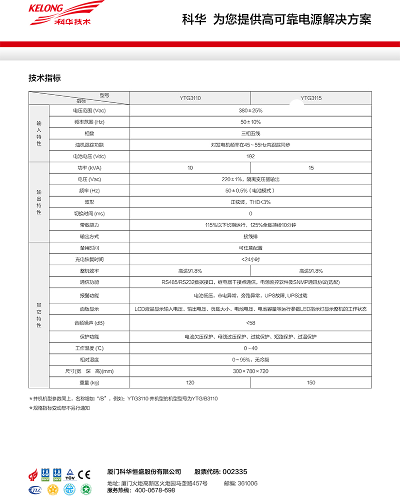 科华UPS电源 YTG系列 10-15kVA